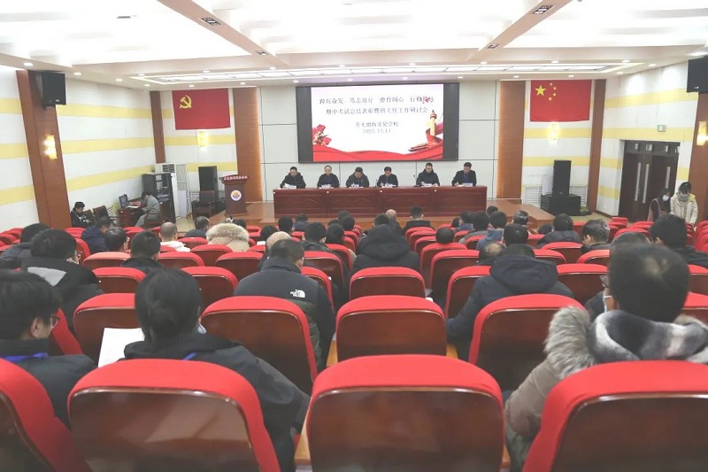 教育泽流及远,担当深耕不辍。自新学期开学以来,学校各项教育教学工作稳步推进,教学成绩和常规管理不断进步,优秀成绩的取得离不开全体班主任的辛勤付出。为了表彰先进、总结工作经验、安排部署下一阶段的工作,学校于12月13日在和谐楼报告厅举办了《踔厉奋发 笃志前行 德育润心 行稳致远》期中考试总结表彰暨班主任工作研讨会。校长梁本江,支部委员徐涛、杨益祥,副校长娄建东、丁建军,校务委员刘英伟及学校全体班主任共同参加。