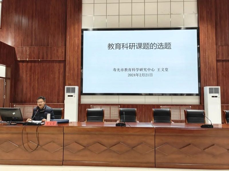 下午由寿光市教科研中心教科研创新研究室王义堂主任做第一场宣讲。王义堂主任先介绍了教育科研的现状,接着从教育科研选题的来源和方法、设计题目的思维进程及步骤、题目核心部分的常见结构、题目限制部分的常见结构、课题题目常见的错误写法、设定课堂题目的注意事项六大方面为老师们阐述了教育科研如何选题和撰写题目。王主任希望,在教育科研的路上,所有教师都能成为“四多”好老师。
