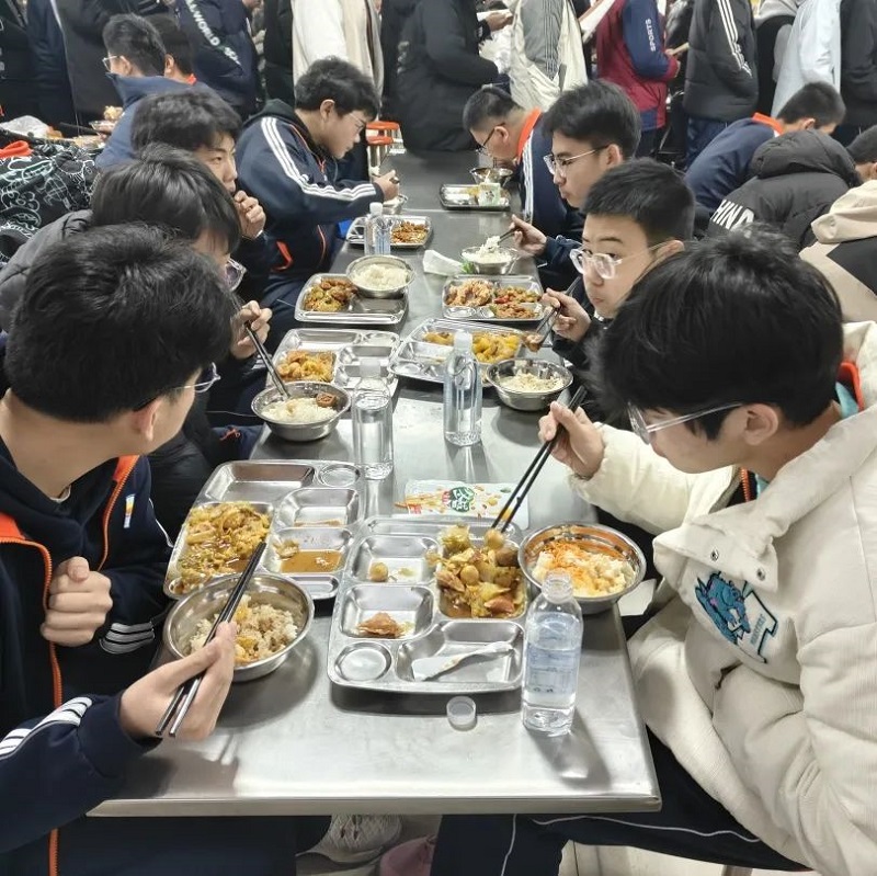 学校餐厅为同学们准备好了丰盛的餐食,荤素搭配,营养均衡。一顿美餐洗去旅途的劳累、缓解学习的疲惫,让同学们从居家“冬眠”的状态重新焕发青春活力,迅速适应快节奏的校园生活。下课后,同学们分批次前往餐厅就餐,餐厅工作人员为同学们准备好蛋炒饭、朝天锅、火烧、粽子、水饺等主食,炸鳕鱼、炸鸡排、山药排骨、粉皮鸡、羊肉汤、宫保鸡丁等菜品,免费提供紫菜蛋花汤、老母鸡汤、小米粥、玉米面粥等热粥,丰富多样的饮食充分满足了同学们忙碌了一下午的肠胃。
