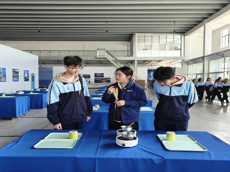 第二站则是夙沙氏非物质文化遗产研学基地,同学们进入展览馆沉浸式体验千年海盐文化,通过观摩盐业历史文物、民俗器具、古法制盐工艺及多媒体影像,深入了解盐宗夙沙氏传说、历代盐政制度及"煮海为盐"的科技演变。