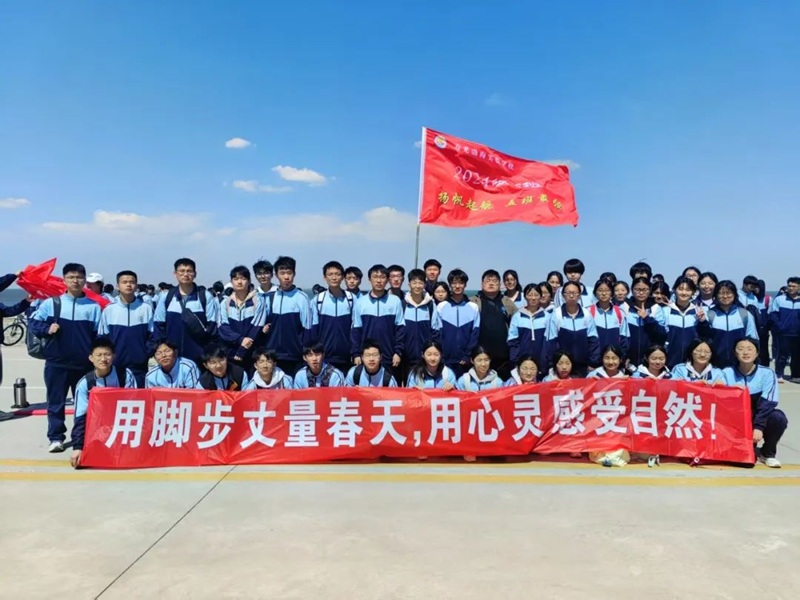 春风拂面,队旗飘扬,青春的欢笑与路边鸟鸣交织成一曲和谐的乐章。蓝天绿水为伴,良师好友同行,同学们青春洋溢,朝气蓬勃。恬风暖日里,七十华里漫漫长路充满了欢声笑语。