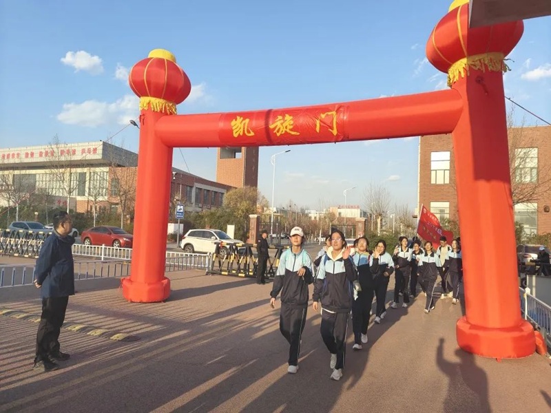 宣誓完毕后,梁本江校长的动员演讲点燃了所有人的斗志:“七十华里不仅是对体能的挑战,更是对意志的磨砺。用足迹绘就华章,用团结书写回忆!” 随着支部委员徐涛发布出发令,同学们高举班旗,列队穿过“出征门”,公安民警和后勤团队全程护航,保障安全。